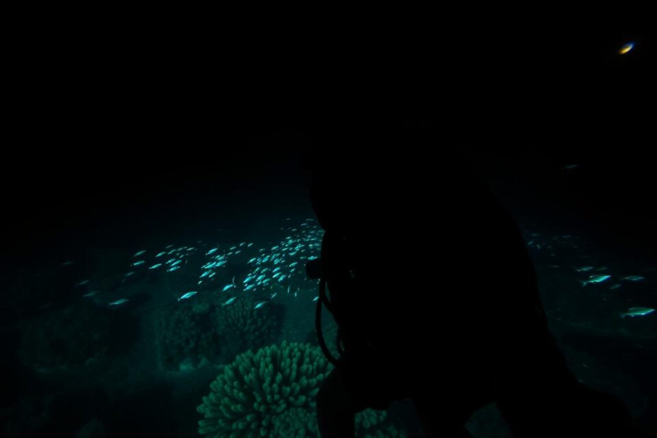 Diving at night shows a whole new world of wonder. It turns the ocean into a mysterious adventure at night, full of thrills. With the